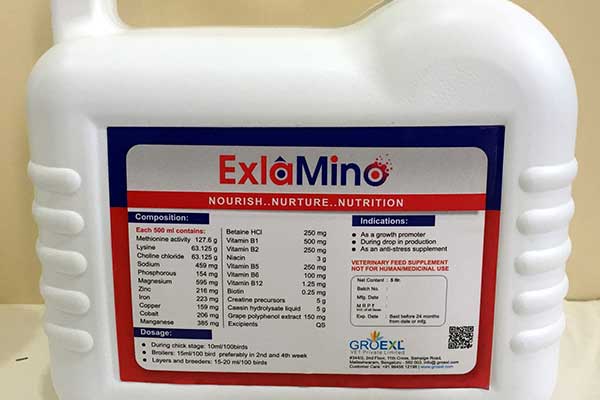 Exlamino is an excellent nutritional supplement providing amino acids, Vitamins and minerals to birds and promote growth and productivity